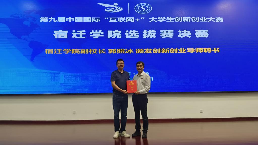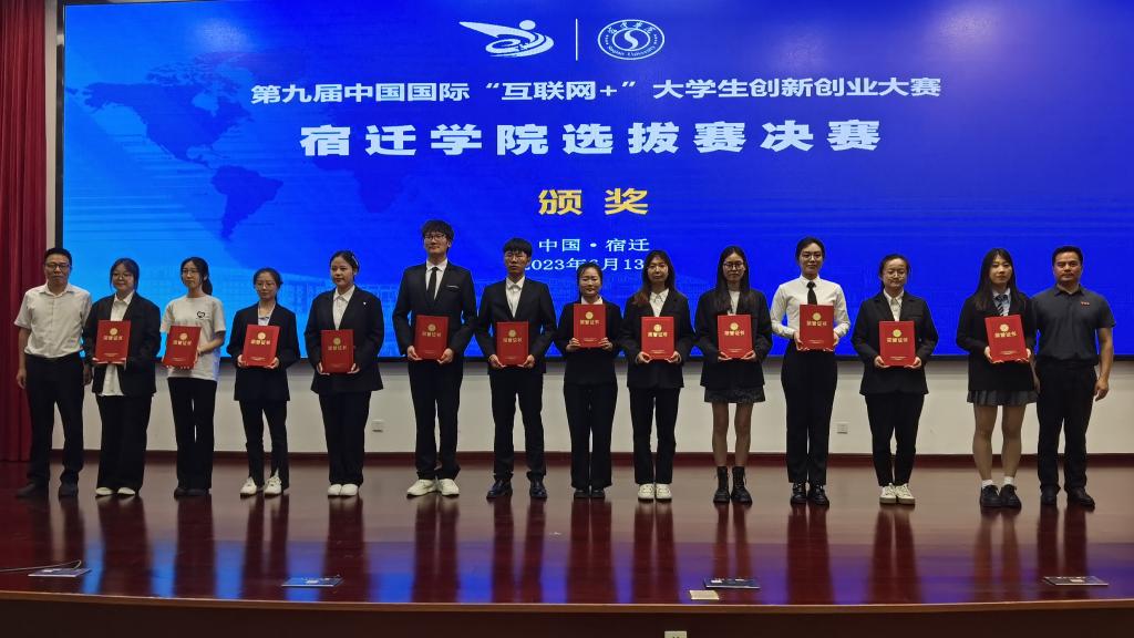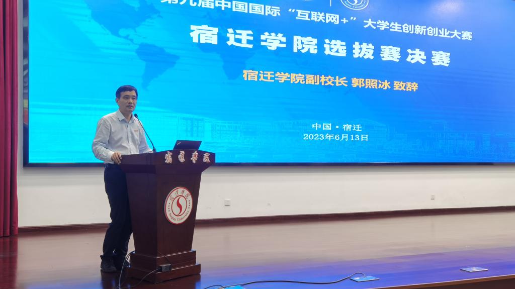2023年6月13日,第九届中国国际“互联网+”大学生创新创业大赛宿迁学院选拔赛决赛在求索楼报告厅举行。本次大赛由创新创业学院主办,大赛特邀创业黑马(江苏)科技有限公司总经理侯俊、万方科创书院院长张世林、江苏泛雅教育科技有限公司总经理吴善超、华夏智库科技咨询股份有限公司董事长任鹏、超星集团副总经理李良、泛雅集团副总经理孙武等行业企业专家担任评委。副校长郭照冰致开幕辞,并为专家评委颁发了大学生创新创业导师聘书。创新创业学院副院长乔燕主持了开幕式和闭幕式,各参赛团队及师生代表300余人到场观摩。