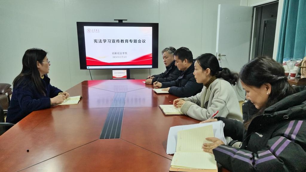 “学法源于一点一滴,守法始于一言一行。”12月4日,国家宪法日之际,为积极弘扬法治精神,强化法律意识与法治观念,构建和谐的校园环境,创新创业学院开展了宪法学习宣传教育活动,创新创业学院全体教职工参加宣传教育会,乔燕副院长主持会议。