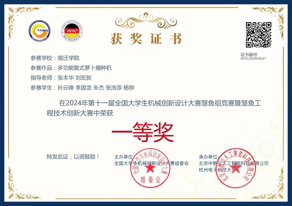 2024年第十一届全国大学生机电创新设计大赛慧鱼组竞赛一等奖