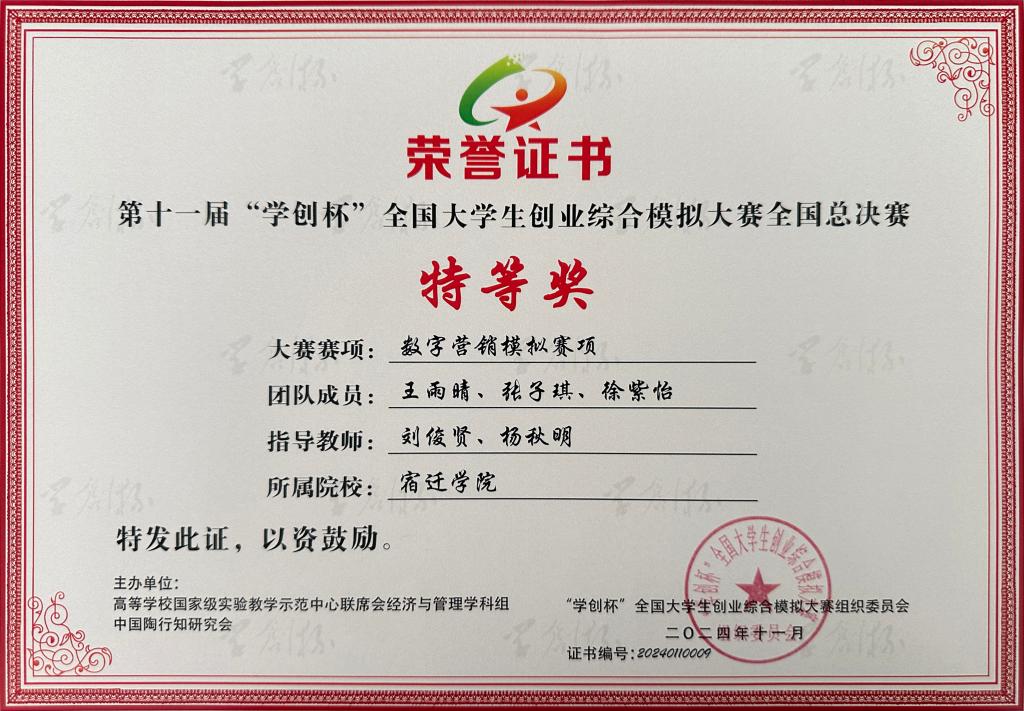 第十一届“学创杯“全国大学生创新综合模拟大赛 特等奖